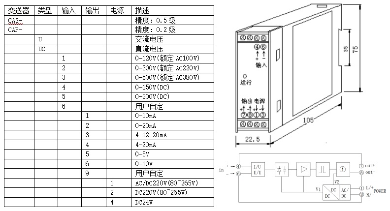 參數(shù):交流、直流電壓測(cè)量,變送輸出