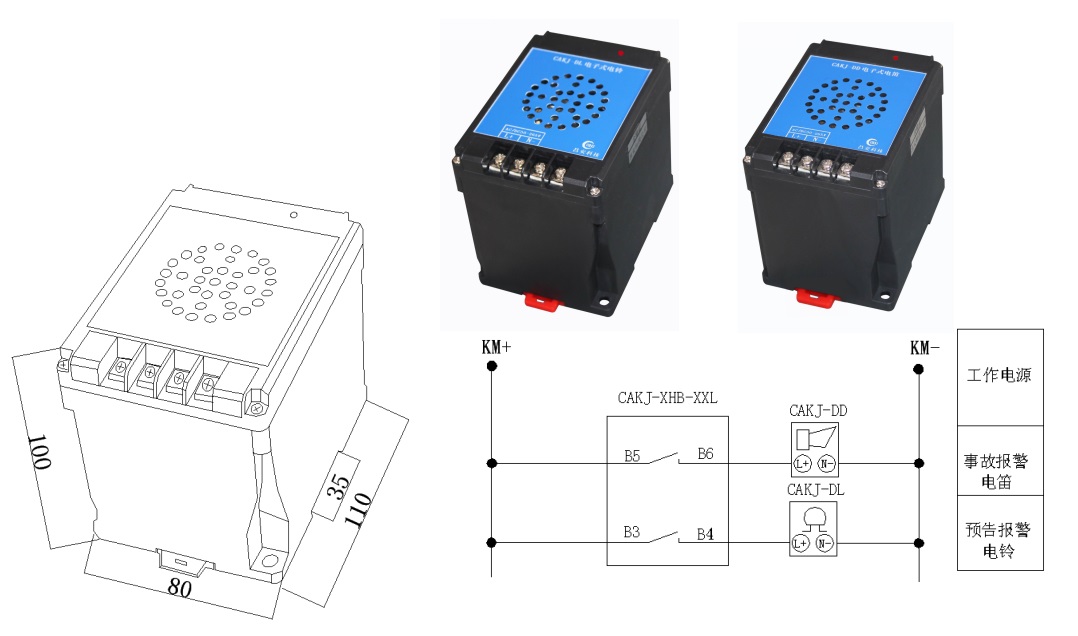 CAKJ-DL,DD電子式電鈴電笛,是為電力系統(tǒng)中央信號報警而設計的一款低功耗、無干擾、大音量電子式報警設備。