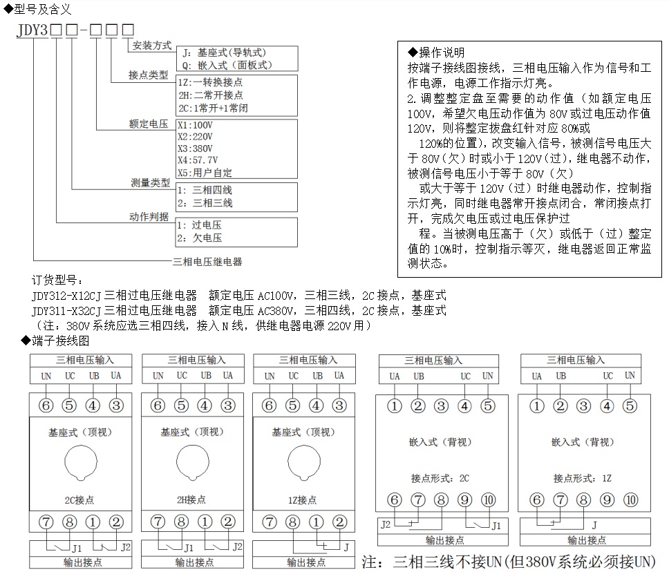 JDY300可調(diào)節(jié)三相電壓繼電器,適用于高壓35kv,10kv或低壓400v線路及用電設(shè)備,作為三相電壓檢測及控制設(shè)備。